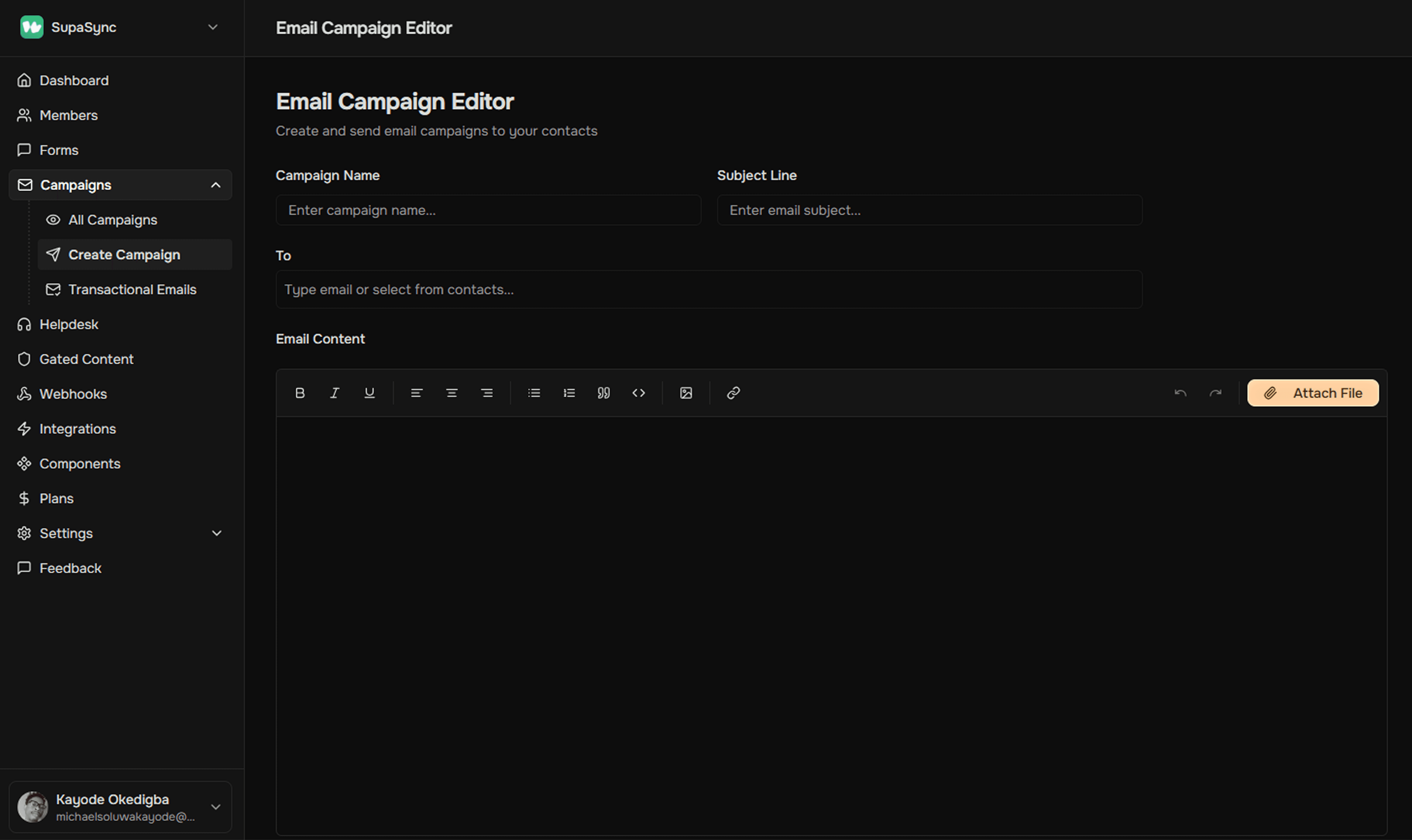 Create and send branded newsletters, product updates, and course announcements to your members.